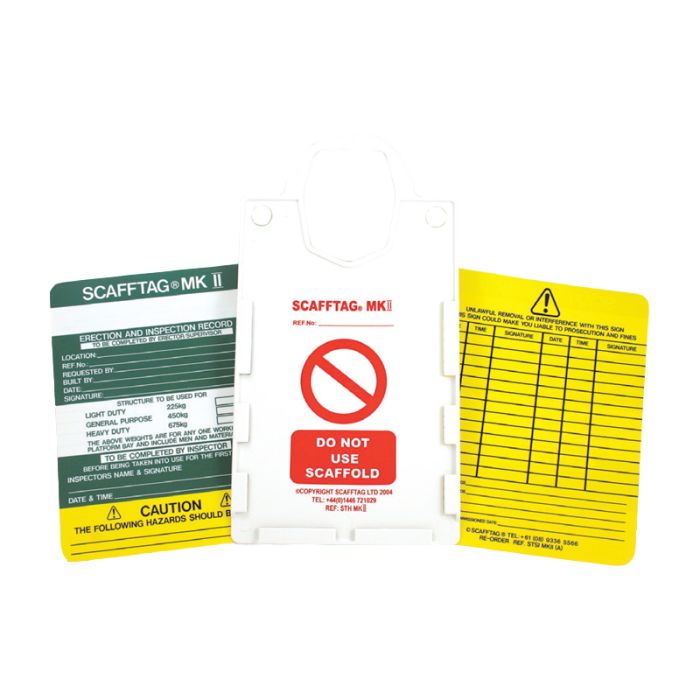 Scafftag MK2 is a larger version of our standard scaffolding tag MK1. The holder is larger with more inspection records available on the insert. Scafftag MK2 helps to manage your scaffolding inspection procedures and help prevent working at height hazards. Complete MK2 kit includes: 10 holders, 10 status inserts and one permanent marking pen.