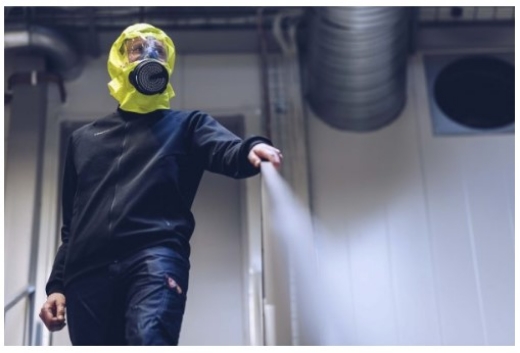Incorporates a silicone half mask with a gas and particle filter that provides protection from smoke, fume, carbon monoxide and other toxic gases that may be generated in a fire