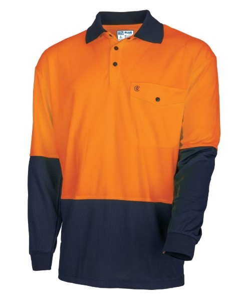 TRU WORKWEAR Recycled Anti-Microbial Micromesh Two Tone Hi-Vis Polo Shirt L/S